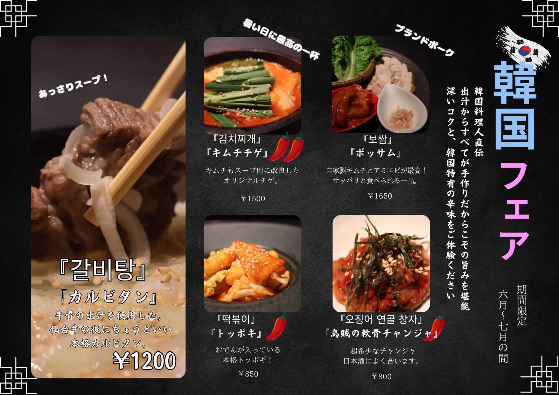 今月いっぱいまで、「韓国フェア🇰🇷」も行なっており、焼肉にも相性ぴったりなマッコリもご用意しています🍶暑い日こそ辛いものを食べて、汗をかきましょう💦☀️