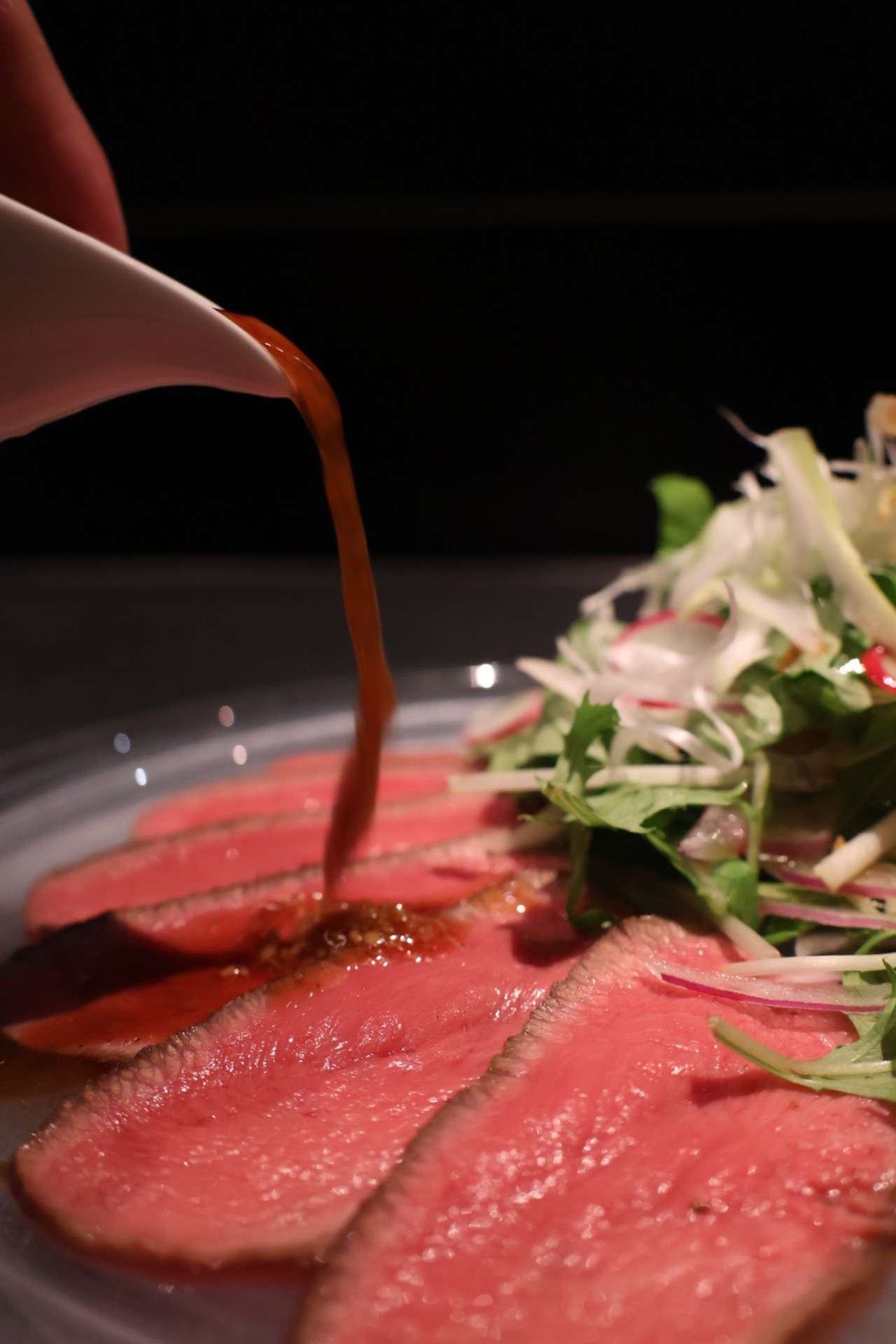 🍽 Beef Tongue Carpaccio with Aromatic Herb Sauce – 950 yen