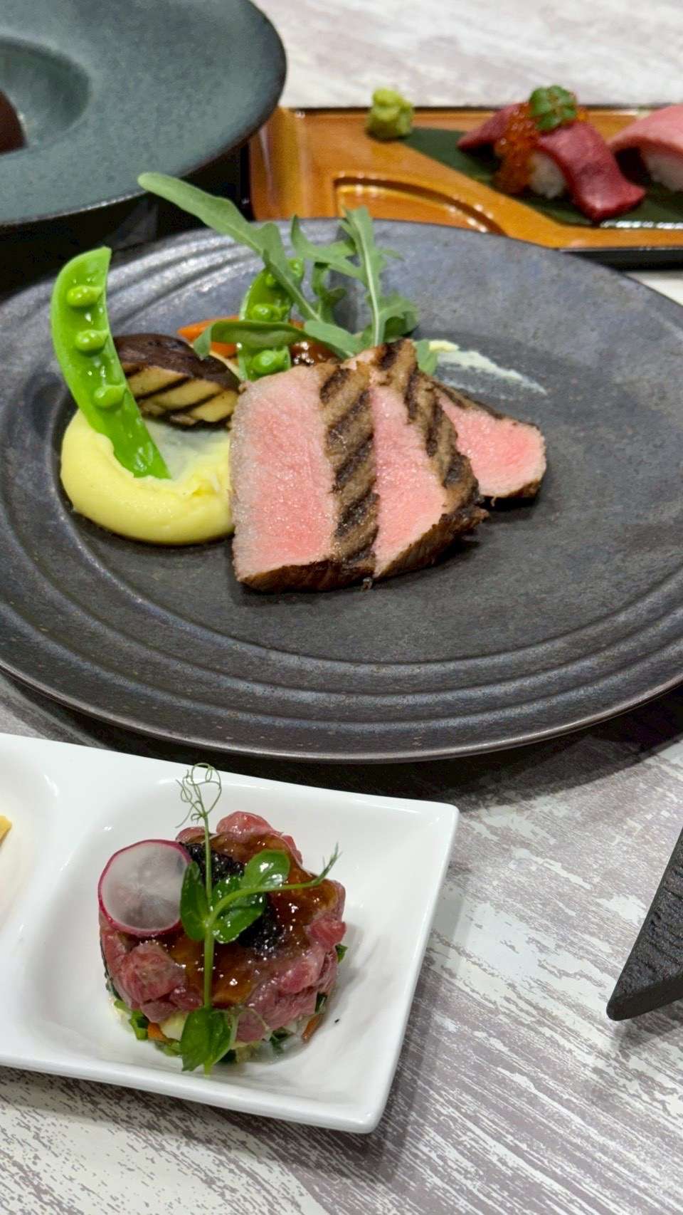 華やかな香りと奥行きをあわせ持つ ロエロ・アルネイス は、きめ細かな赤身肉との相性が抜群。仙台牛の旨味を繊細に引き立てます。